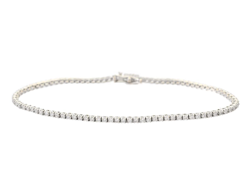 TENNISARMBAND, 18K vitguld, 90 briljantslipade diamanter ca 1,35 ctv, ca TW-W/VS-SI, längd 17,5 cm, vikt 5,6 g.