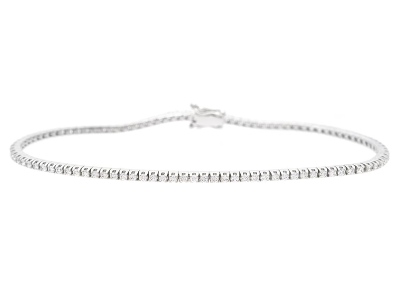 TENNISARMBAND, 18K vitguld, 100 briljantslipade diamanter 0,96 ctv, ca TW-W/VS-SI, längd 16,5 cm, vikt 5,3 g.