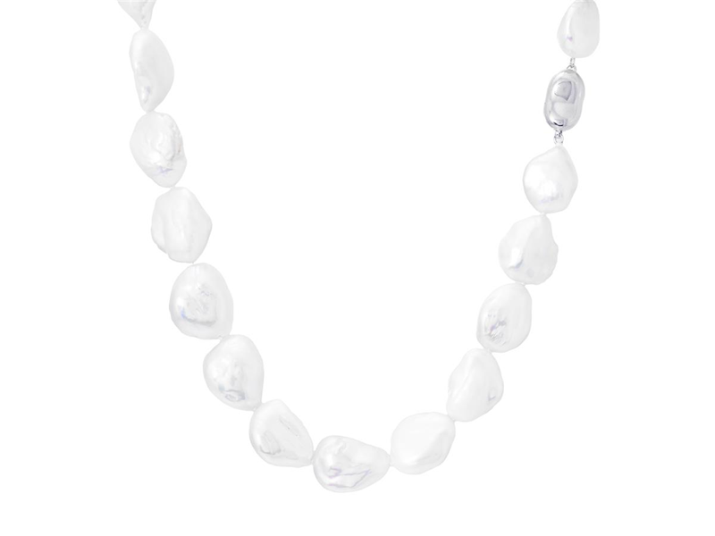 PÄRLCOLLIER, odlade sötvattenspärlor, barocka till diskformade ca 15,0 mm, lås i silver och vitmetall, längd 45 cm, vikt ca 65,0 g.