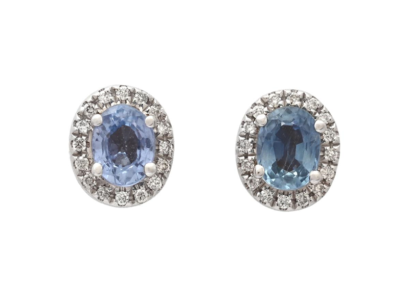 ÖRHÄNGEN, 18K vitguld, ovala fasettslipade blå safirer 0,49 ctv, 32 briljantslipade diamanter 0,05 ctv, ca W-Cr/SI-P, stift, mått ca 6,0 x 5,0 mm, vikt 1,3 g.