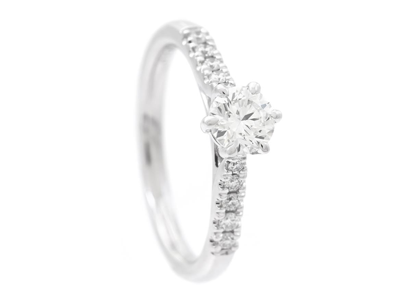 RING, 18K vitguld, briljantslipad diamant 0,43 ct, TW(G)/VS1, GIA Diamond Dossier 6521961976, 10 briljantslipade diamanter 0,14 ctv, ca TW/VS, storlek 16,5 mm, vikt 3,6 g.