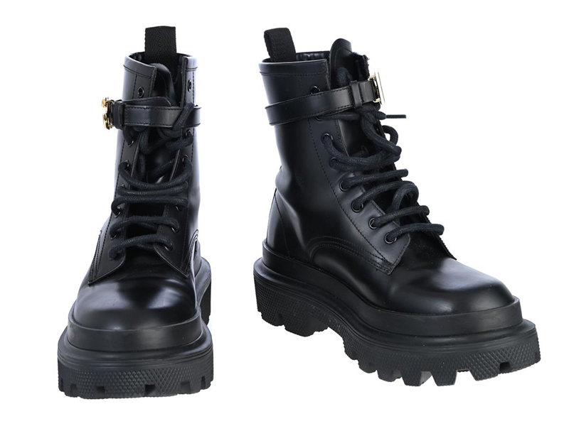 SKOR, DOLCE & GABANNA, boots, svarta läder, stl 38. guldfärgade beslag, Logo DG. skopåse, kartong.