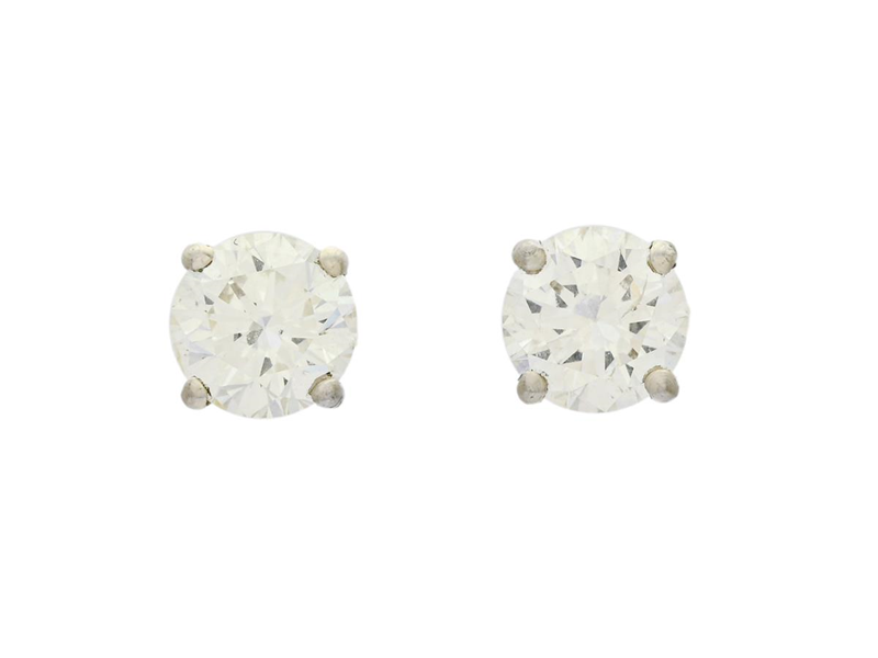 ENSTENSÖRHÄNGEN, 18K vitguld, 2 briljantslipade diamanter ca 1,00 ctv, ca W(H)/SI1-SI2, stift, vikt 1,5 g, en av diamanterna med nagg vid kuletten samt inneslutning som når ytan.