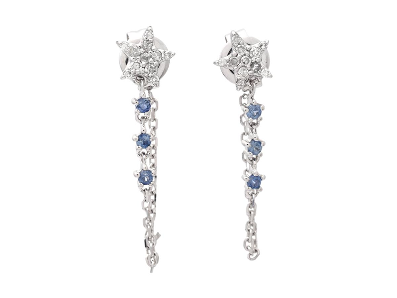 ÖRHÄNGEN, 18K vitguld med 6 blå safirer 0,12 ctv, åttkantslipade diamanter 0,09 ctv, stift, längd 23,5 mm, bredd 6 mm, vikt 1,3 g