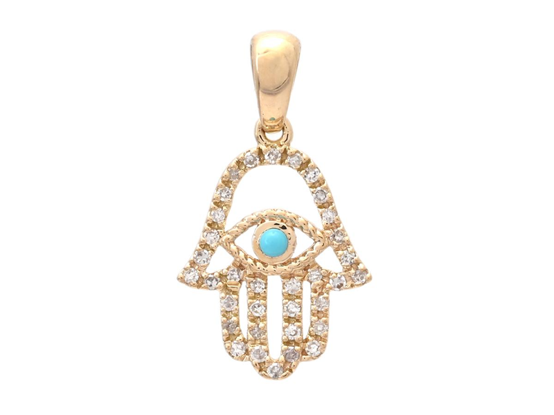 HÄNGE, 18K guld, hand med turkos 0,02 ct, åttkantslipade diamanter 0,10 ctv, vikt 0,8 g, längd 19 mm, bredd 10,5 mm