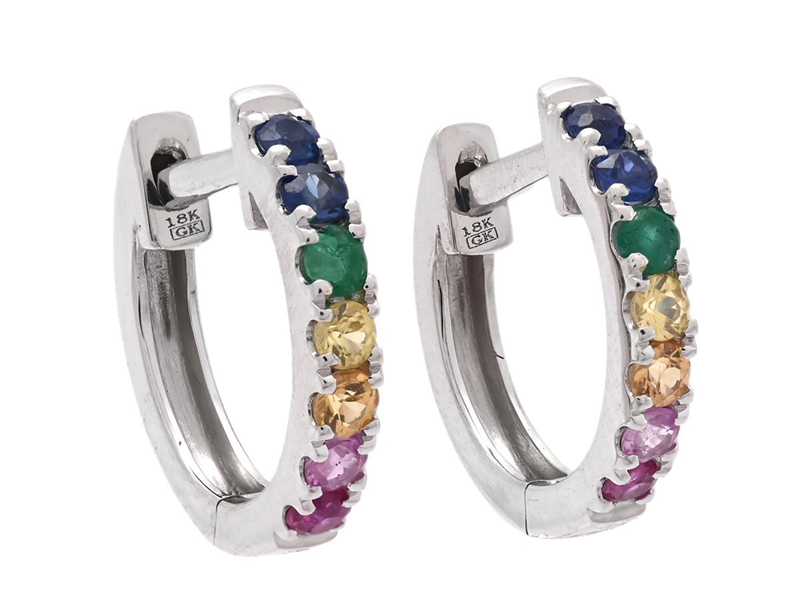 ÖRHÄNGEN, 18K vitguld, runda fasettslipade färgstenar ca 0,30 ctv, stift, höjd 11,0 mm, vikt 1,5 g.