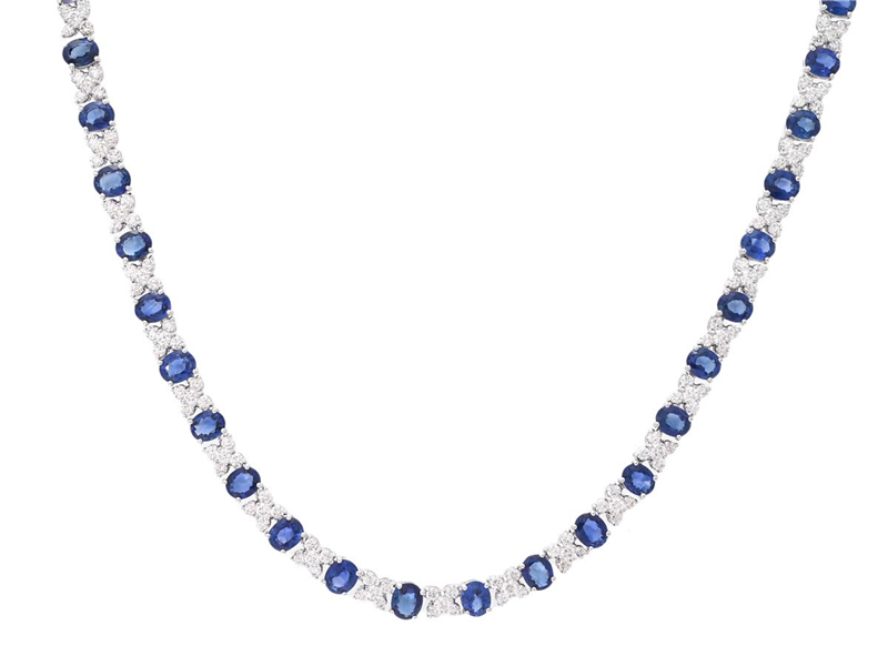 COLLIER, 18K vitguld med 45 ovala blå safirer 20,24 ctv, 225 briljanter 6,16 ctv, ca TW-TCR/VS-SI, längd 41 cm, vikt 24,7 g, etui