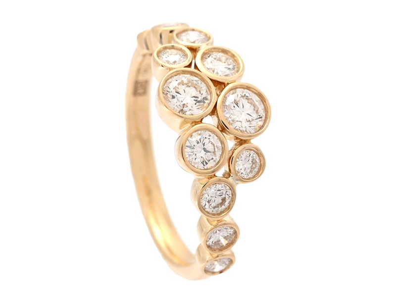 RING, 18K guld med 12 briljantslipade diamanter 0,97 ctv, ca TW-W/SI, storlek 17 mm vikt 3,5 g