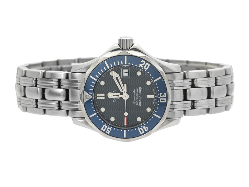 OMEGA, Seamaster, Professional (300m/1000ft), Cal 1424, Serie nr. 59072746, PIC nr. 2583.80.00, Ref nr. SU 596.1523, Boett nr. 596.1523 (LL), damur, 28 mm, stål, quartz, safirglas, datum, OBS: skadad krona/ställaxel, originallänk, viklås, Ref nr. 6501/827, cert (ej komplett), 2003, box, ytterkartong.