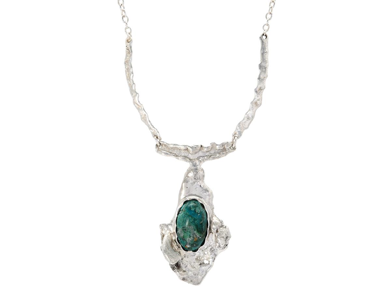 COLLIER, sterlingsilver, cabochonslipad krysokolla, Juvelerare Lars Erik Liljegren, Stockholm 1976, längd 58 cm, vikt 78,9 g. (d)