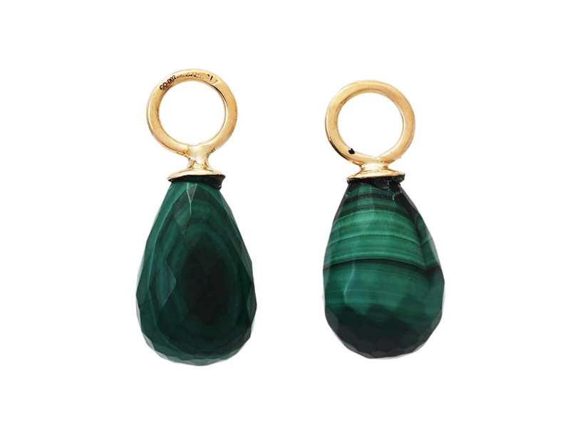 PÅHÄNGEN, 2 st, 18K guld, briolettslipad malakit ca 12,0 x 8,0 mm, ögla 4,0 mm, vikt 3,4 g.