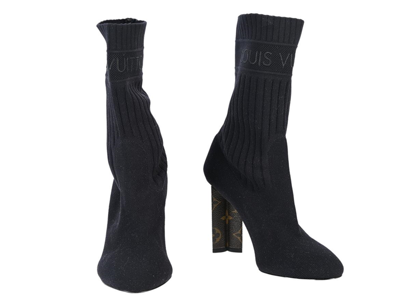 LOUIS VUITTON, Silhouette Ankle Boots, monogram canvas, stretch i svart, klack 9,5 cm, stl 36, dustbag.