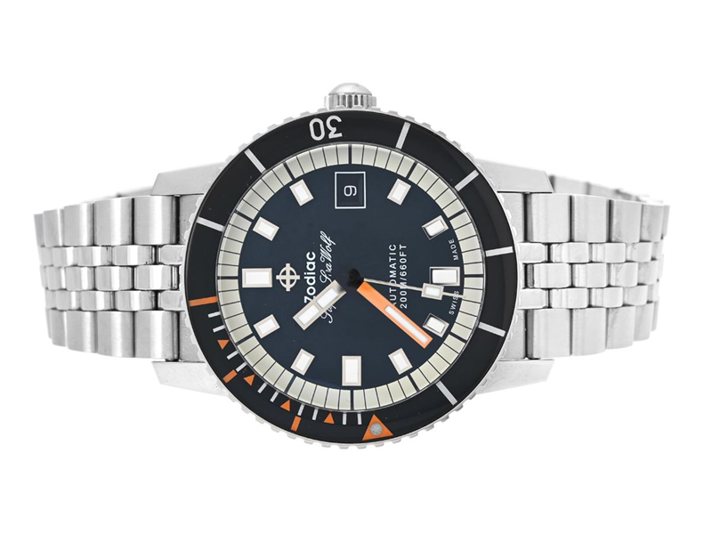 ZODIAC, Super Sea Wolf (200M/660FT), Cal 1-11, Serie nr. 50459, Ref nr. ZO9266, herrur 40 mm, stål, automatisk, mineralglas, datum, originallänk, viklås, cert, december 2022, box, ytterkartong.