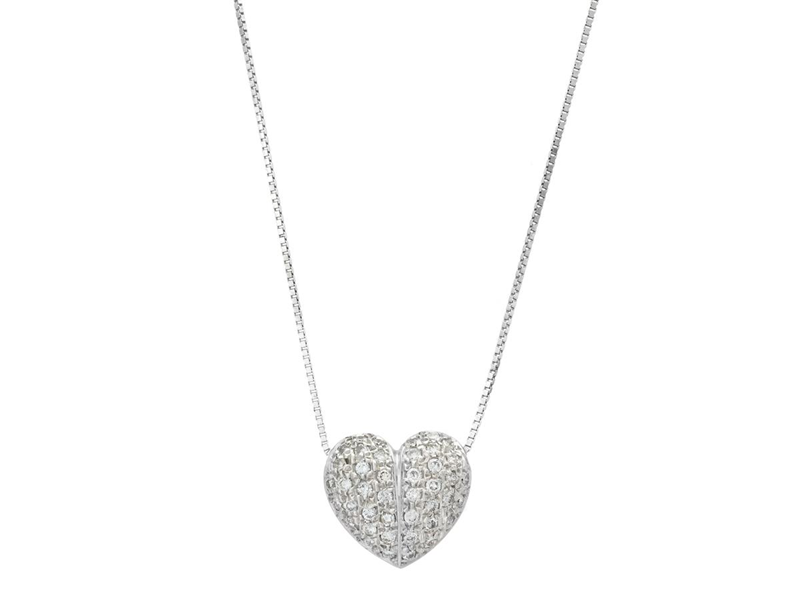 HÄNGE MED KEDJA, 14K vitguld, briljanter ca 0,42 ctv, längd 40 cm, vikt 4,5 g, hjärtat är rodinerat 18K guld.