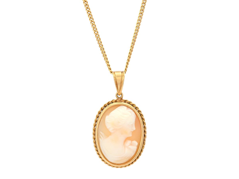 HÄNGE MED KEDJA, 18K guld, kamédam, längd 42,5 cm, vikt 7,6 g.