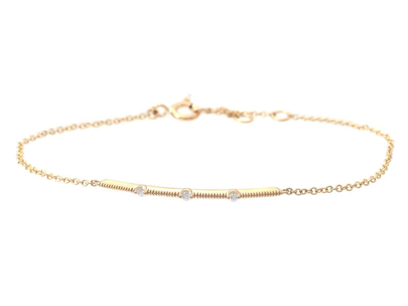 ARMBAND, 18K guld, 3 briljantslipade diamanter ca 0,04 ctv, ca W/VS-SI, längd 14,5/16/17,5 cm, vikt 1,7 g.