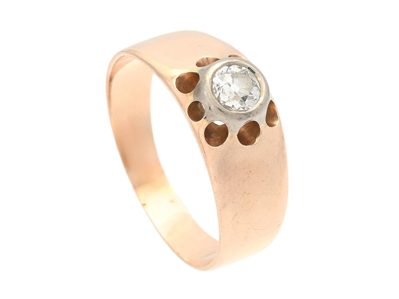 ENSTENSRING, 14K guld, gammalslipad diamant 0,27 ct, stl 16,5 mm, vikt 2,8 g.