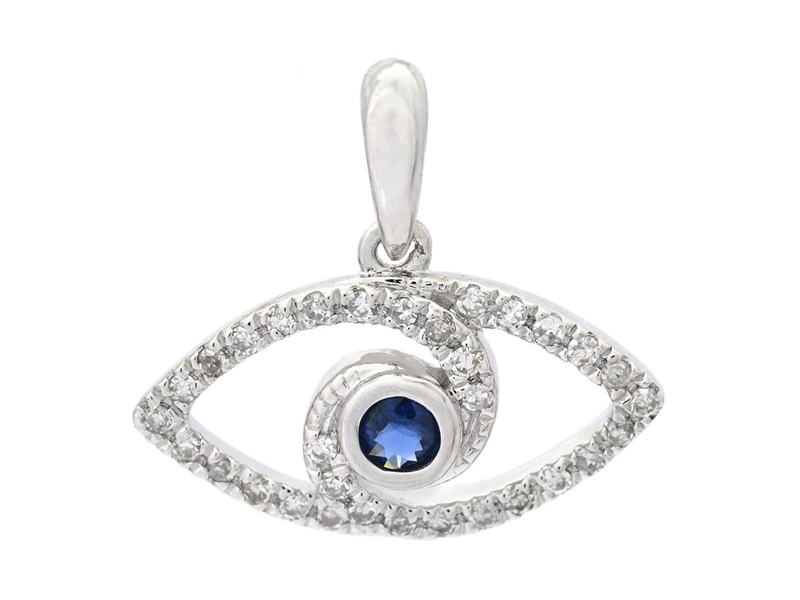 HÄNGE, öga, 18K vitguld med blå safir 0,06 ct åttkantslipade diamanter 0,10 ctv, vikt 0,9 g bredd ca 14,7 mm
