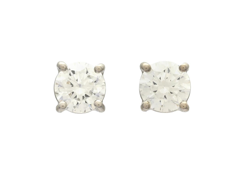 ENSTENSÖRHÄNGEN, 18K vitguld, 2 briljantslipade diamanter 0,67 ctv, R(D)/VS1-VS2, IGI report 645432145 och 618497200, vikt 1,7 g, stift.