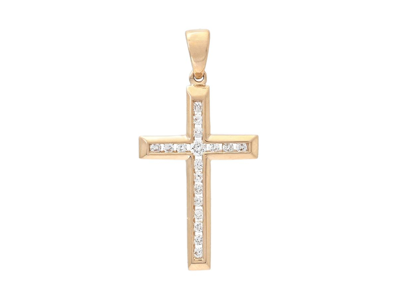 HÄNGE, 18K guld, kors, 18 briljantslipade diamanter ca 0,13 ctv, ca TW-W/VS-SI, mått 20,0 x 12,5 mm, vikt 1,3 g.