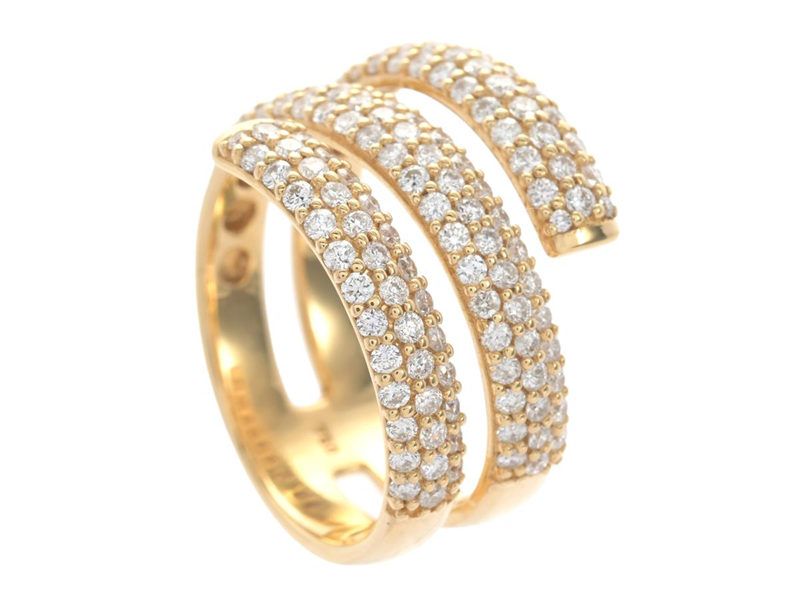 RING, 18K guld, 136 briljantslipade diamanter 1,21 ctv, ca TW-W/SI-P, storlek ca 17 mm, vikt 6,4 g, några diamanter med skador.