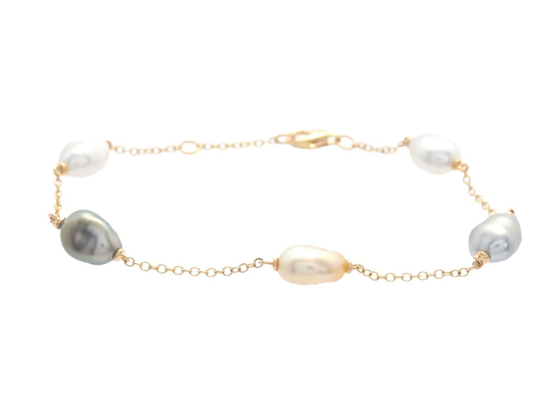 PÄRLARMBAND, 18K guld, South Sea pärlor (Keshi) ca 6,5-7,0 mm, längd ca 16/17 cm, vikt 3,7 g.