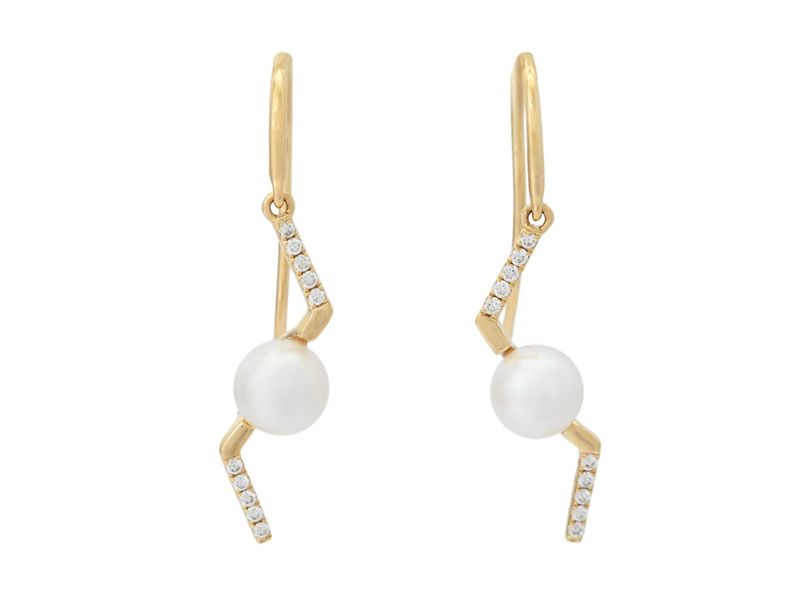 PÄRLÖRHÄNGEN, 18K guld, odlade pärlor ca 5,0 mm, 20 briljantslipade diamanter 0,08 ctv, ca TW-W/VS-SI, krokar, längd 29,0 mm, vikt 1,7 g.
