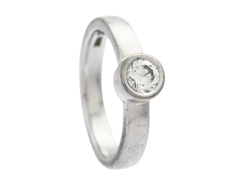 H STRÖMDAHL, enstensring, 18K vitguld, briljantslipad diamant 0,40 ct, TW(G)/VS1, GIA Diamond Dossier 2396159648, stl 17 mm, vikt 7,0 g.