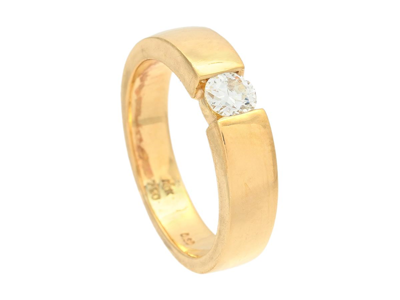 ENSTENSRING, 18K guld, gammalslipad diamant ca 0,30 ct, ca TW/VS, stl 17,25 mm, vikt 9,1 g, diamanten har nagg vid rondisten.