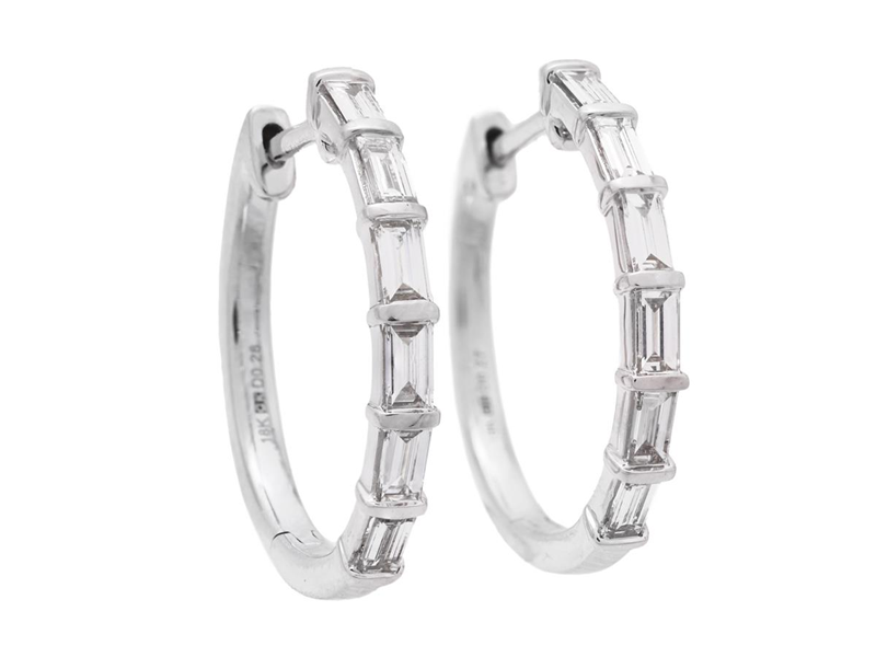 ÖRRINGAR, 18K vitguld, 12 baguetteslipade diamanter 0,55 ctv, ca TW/VS, stift, höjd 18,0 mm, vikt 3,5 g.