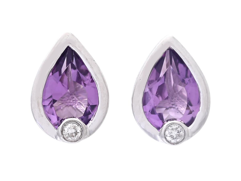 ÖRHÄNGEN, 18K vitguld med ametister 0,71 ctv, åttkantslipade diamanter 0,02 ctv,, stift, vikt 1,2 g