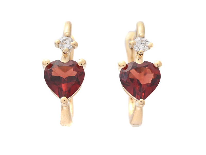 ÖRHÄNGEN, 18K guld med hjärtslipade granater 1,08 ctv, briljantslipade diamanter 0,07 ctv, vikt 1,9 g