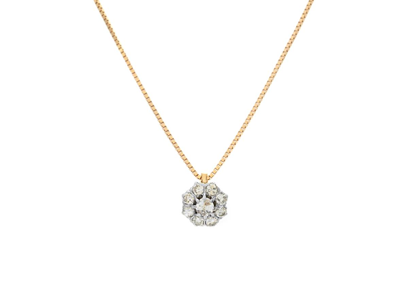 HÄNGE MED KEDJA, 18K guld/platina, gammalslipade diamanter ca 0,45 ctv, ca W-TCr/SI, höjd hänge 8,4 mm, längd kedja 44 cm, vikt 4,0 g.