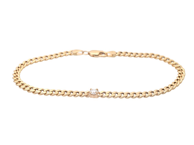 ARMBAND, 18K guld, pansarlänk, briljantslipad diamant ca 0,18 ct, ca TW/VS, längd 18 cm, vikt 3,7 g.