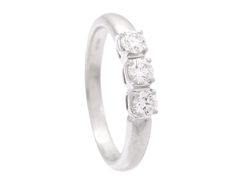 TRESTENSRING, 18K vitguld, 3 briljanter ca 0,33 ctv ca W/SI, storlek 16 mm, vikt 3,3 g