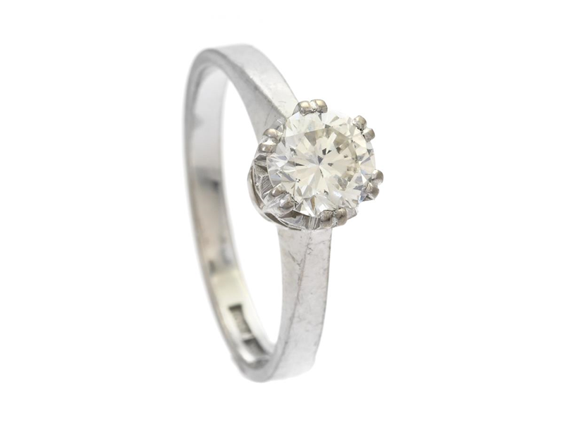 ENSTENSRING, 18K vitguld, briljantslipad diamant ca 0,70 ct, ca TCa(K)/VS, stl 16,75 mm, vikt 3,4 g.