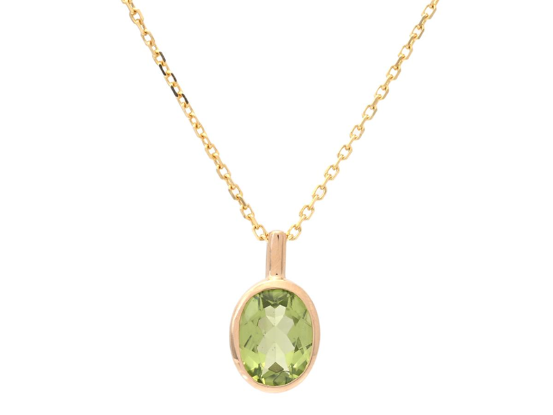 HÄNGE MED KEDJA, 18K guld, oval fasettslipad peridot 1,27 ct, höjd 13,0 mm, kedja 42/45 cm, vikt 2,7 g.