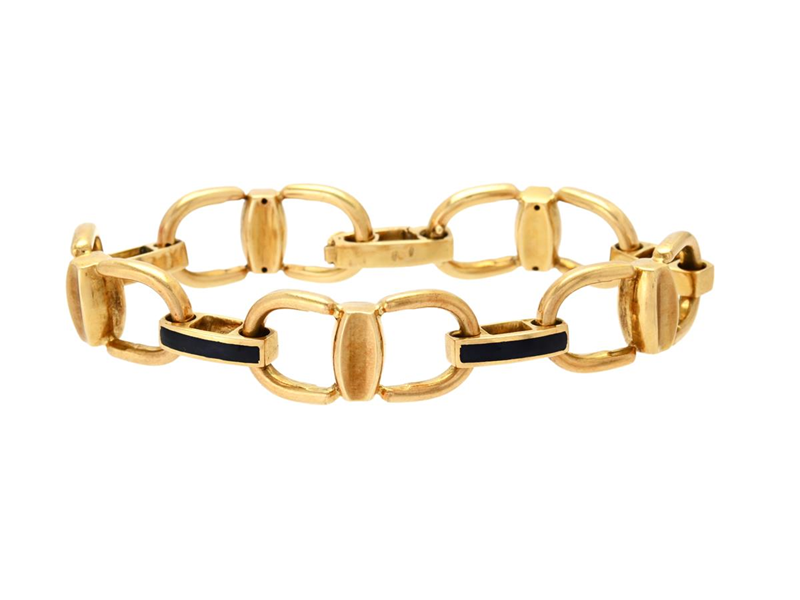 ARMBAND, 18K guld, mörkblå emalj, längd 18 cm, vikt 32,9 g.