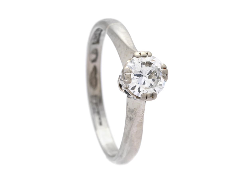 ENSTENSRING, 18K vitguld, briljantslipad diamant ca 0,50 ct, ca TW/VS, stl 15,75 mm, vikt 2,8 g.