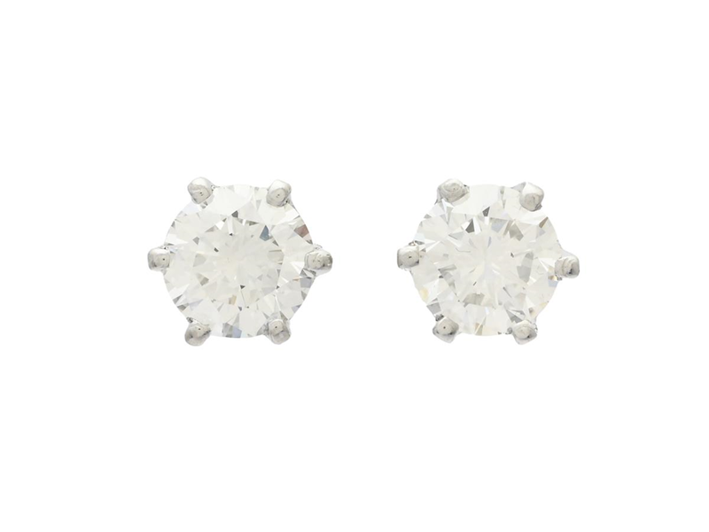 ENSTENSÖRHÄNGEN, 18K vitguld, 2 briljantslipade diamanter ca 0,80 ctv, ca TW/VS, vikt 2,5 g, stift, ena diamanten med natural invid rondisten, etui.