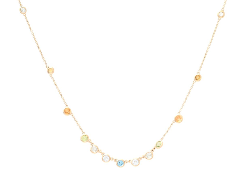 COLLIER, 18K guld, topaser ca 0,40 ctv, citriner ca 0,33 ctv, peridoter ca 0,25 ctv, prasioliter ca 0,34 ctv, längd 40/42 cm, vikt 2,7 g.