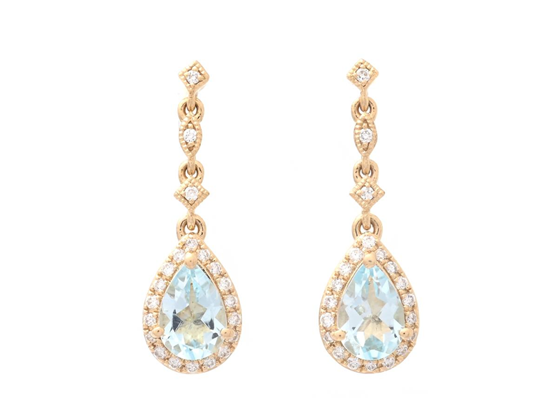 ÖRHÄNGEN, 18K guld med 2 blå topaser 0,91 ctv, 42 briljantslipade diamanter 0,12 ctv, ca W/SI, stift, vikt 2,3 g