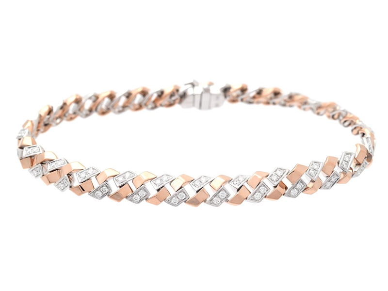 ARMBAND, 18K vitguld/roséguld, 96 briljantslipade diamanter 0,89 ctv, ca TW-W/VS, längd 17,5 cm, vikt 17,2 g.