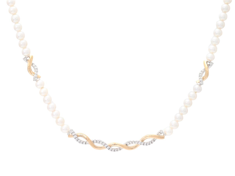 COLLIER, 18K guld/vitguld, odlade sötvattenspärlor, 48 briljantslipade diamanter 0,36 ctv, ca TW-W/VS-SI, längd 42 cm, vikt 13,4 g.