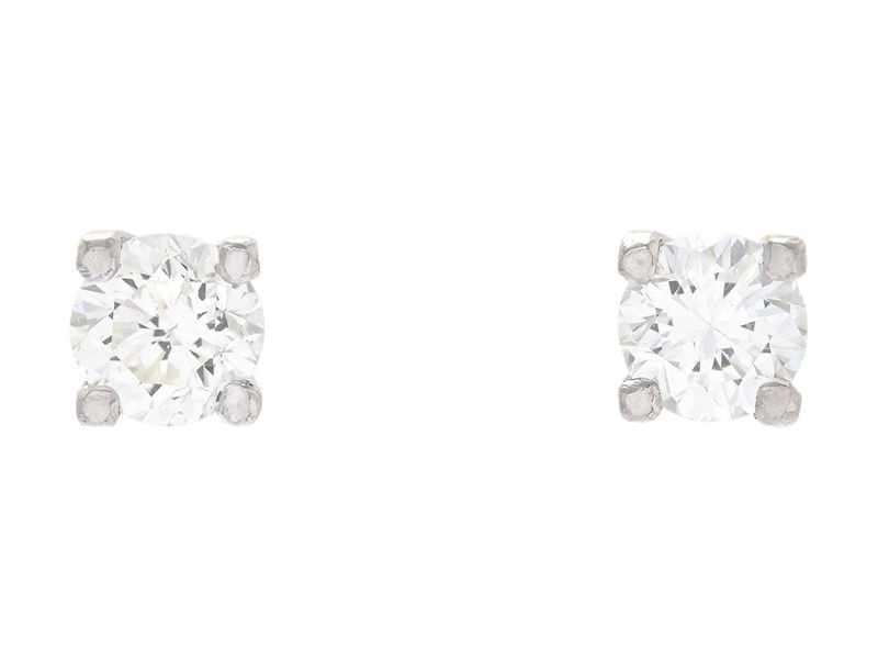 ENSTENSÖRHÄNGEN, 18K vitguld, 2 briljantslipade diamanter ca 0,68 ctv, ca TW/SI, vikt 1,3 g, stift, ena diamanten med naturaler invid rondisten.