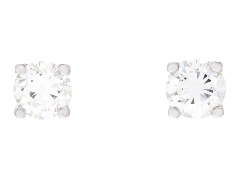 ENSTENSÖRHÄNGEN, 18K vitguld, 2 briljantslipade diamanter ca 1,02 ca TW-W(G-H)/VS1, vikt 1,4 g, stift, nagg på kuletterna.