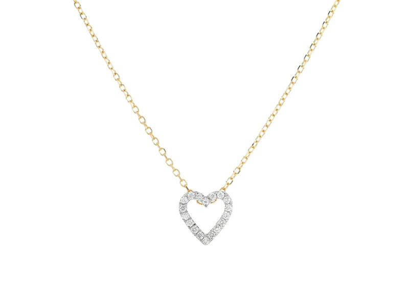 COLLIER, 18K guld, hjärta, briljanter ca 0,09 ctv, längd 45 cm, förkortningsögla, vikt 1,5 g.