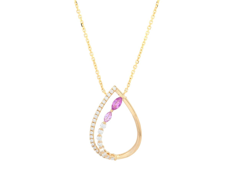 COLLIER, 18K guld, navettslipade rosa safirer 0,24 ctv, 30 briljantslipade diamanter 0,27 ctv, ca TW/VS, höjd 23,0 mm, längd 42/45 cm, vikt 4,5 g.