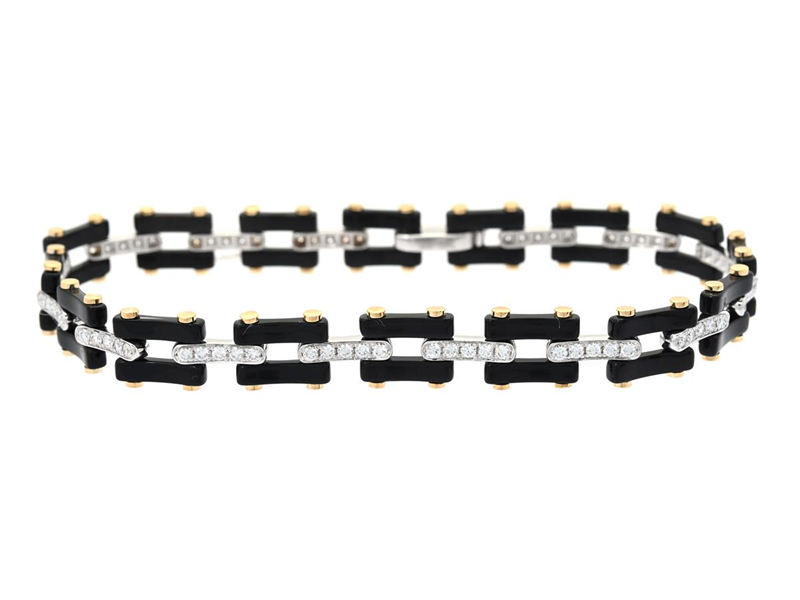 ARMBAND, 18K guld/vitguld, svart agat 11,34 ctv, 80 briljantslipade diamanter 0,90 ctv, ca TW/VS, längd 18,5 cm, vikt 9,4 g.