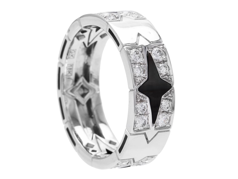 RING, 18K vitguld, grå pärlemor 0,59 ctv, 28 briljantslipade diamanter 0,51 ctv, ca TW/VS, storlek 16,75 mm, bredd 6,0 mm, vikt 5,2 g.